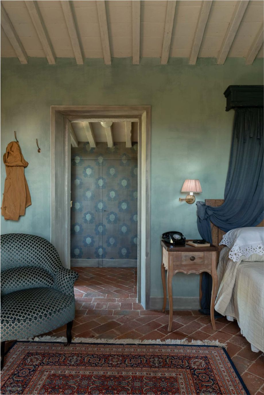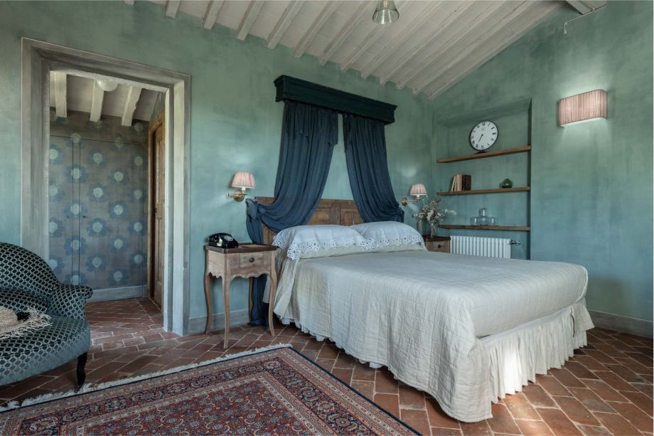 La camera si trova al primo piano dell’annesso ovest, ha un letto matrimoniale, il bagno privato e una bellissima vista sull’antico borgo di Buggiano Castello.