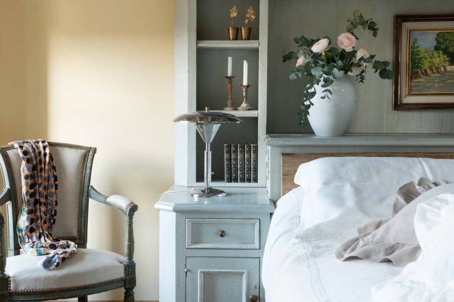 Tutte le camere sono dipinte con colori a calce naturale, tutte diverse, sempre panoramiche, arredate con mobili di recupero restaurati o con mobili artigianali fatti su misura.